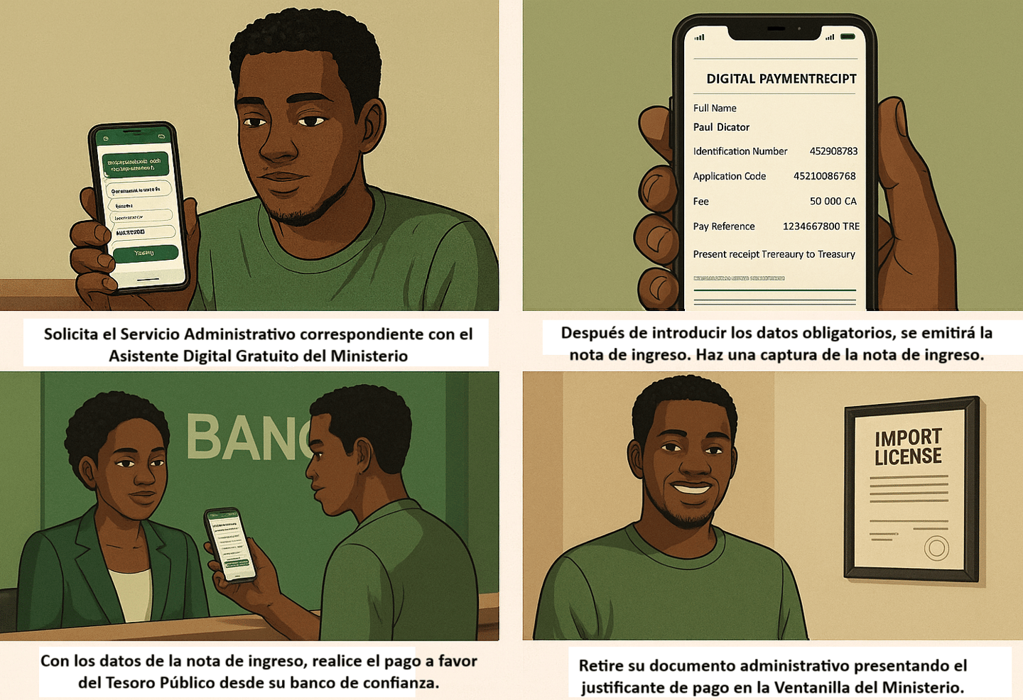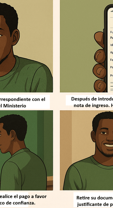 El ciudadano acude a cualquier sucursal del BANGE, banco oficial del Tesoro Público.