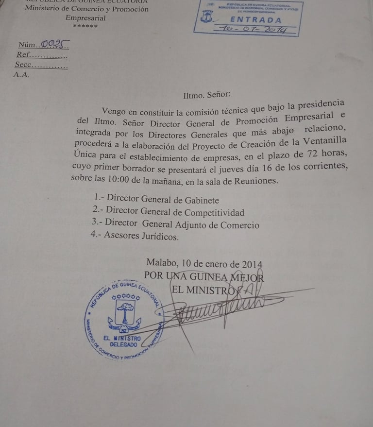 El 08 de enero de 2014, la Presidencia del Gobierno, mediante el Escrito Nº 14-0076-010, remitido por el Ministro Secretario General, trasladó al entonces Ministro de Comercio y Promoción Empresarial, la instrucción de: